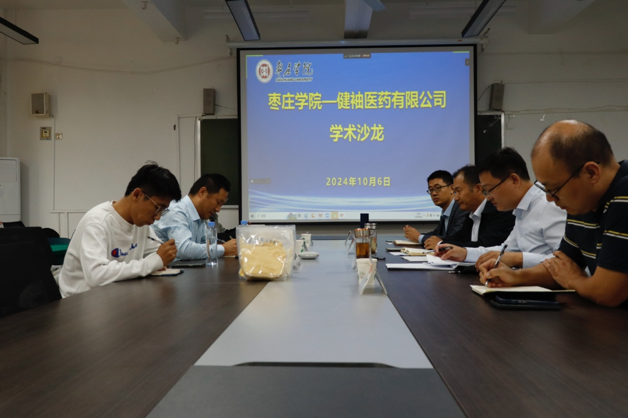 舒德伟董事长介绍了枣庄健袖生物医药有限公司基本情况、产品及技术需求。王京龙院长介绍了yl23455永利的师资队伍、专业设置、人才培养、学科建设等基本情况。