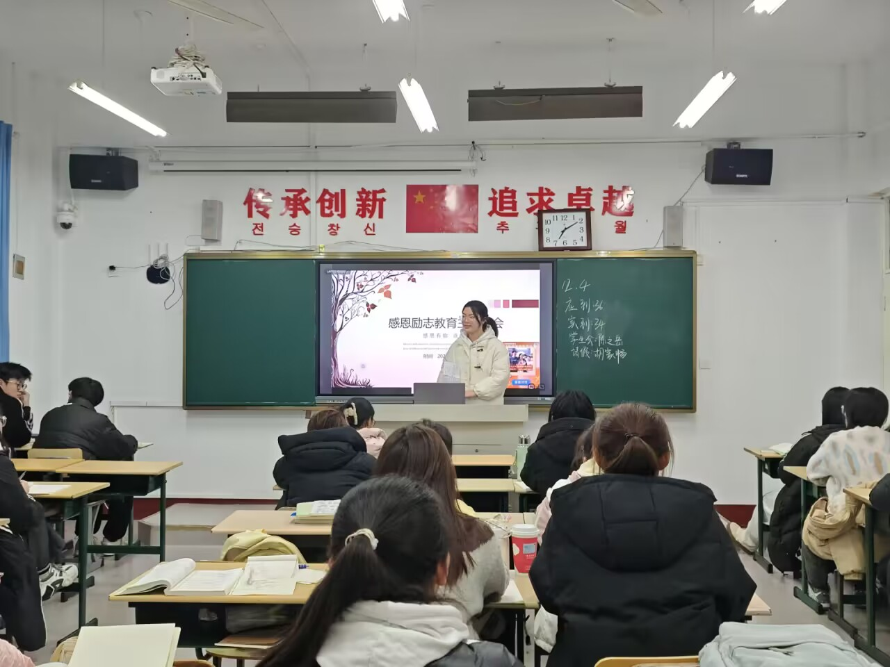 为增强学生的感恩意识和奋进精神,讲好学生资助故事,提升资助育人实效,yl23455永利于2023年12月4日晚在文科楼教室举办“心怀感恩,逐梦未来”感恩励志教育主题班会。班会邀请国家奖学金、国家励志奖学金的学生代表跟2023级新生进行了交流与分享。