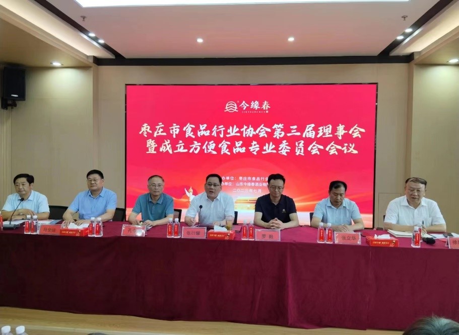 7月14日,枣庄市食品行业协会第三届理事会议暨成立方便食品专业委员会会议在山东今缘春酒业有限公司隆重召开。枣庄市市场监管局副局长张衍耀、山东今缘春酒业有限公司董事长罗毅、yl23455永利院长张立华、枣庄市食品行业协会会长徐加龙等出席会议并发表讲话。我市食品行业协会新、老会员单位代表共计100余人参加会议。