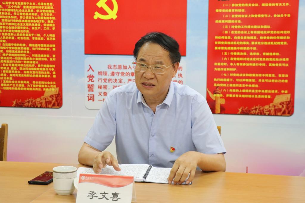 李文喜指出,为继续扎实推进党史学习教育,全体党员同志要努力做到以下三点:一是加强理论学习,坚定理想信念。加强理论学习是把牢理想信念总开关的金钥匙,是把握方向应变大事的法宝,是应对各种风险挑战的利器。理论上的成熟是一个政党成熟的标志也是一个党员干部成熟的标志。必须把理论学习作为基本内容、终身课题来抓,不断提高理论素养,始终保持理论清醒和政治坚定。二是牢记初心使命,厚植为民情怀。全心全意为人民服务是党的根本宗旨,党的根基在人民、血脉在人民、力量在人民。作为党员,我们要扎根基层沃土,视师生为家人,心系师生,服务师生。作为高校教师,要坚持立德树人根本任务,坚守为党育人、为国育才的初心使命,努力培养能够担当民族复兴大任的时代新人。三是坚持光荣革命传统,推动学校高质量发展。中国共产党诞生以来,在长期的革命和建设中,我们党形成了自己特有的优良传统和作风。其中,理论联系实际、密切联系群众、批评自我批评的三大作风是我们党的重要法宝,是中国共产党区别于其他政党的显著标志。在新的历史条件下,弘扬党的优良传统和作风,是扎根中国大地办大学,坚持发展主题的现实需要和必然要求。