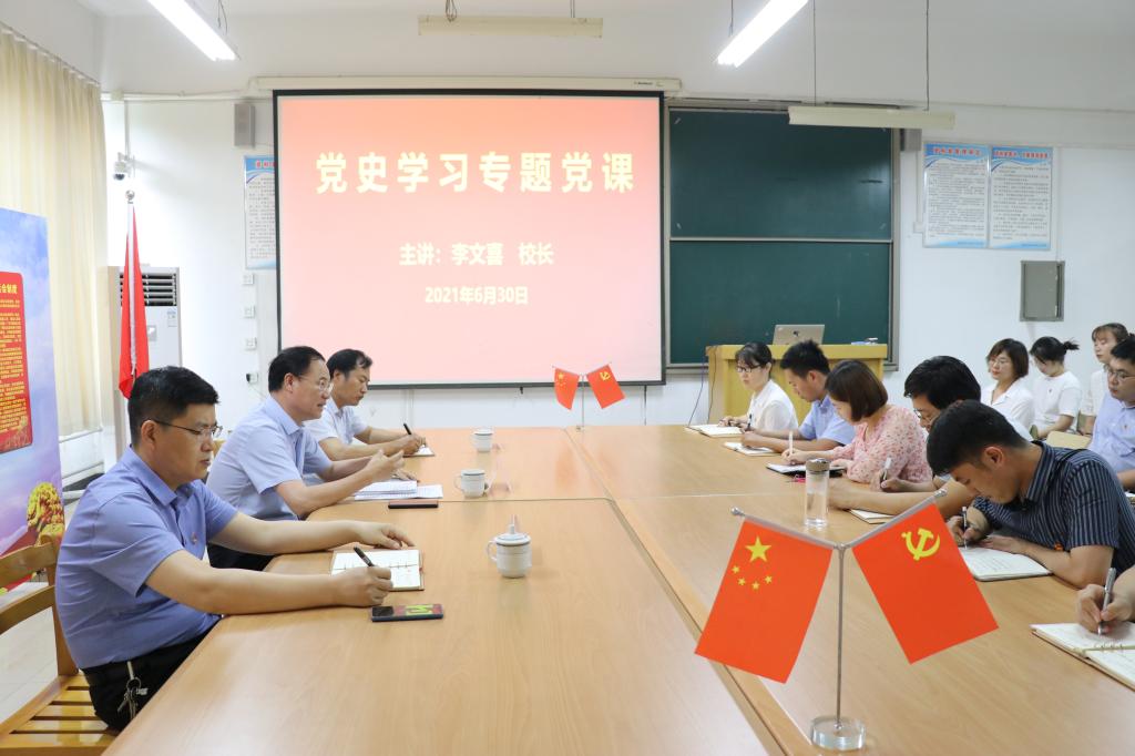 6月30日下午,校党委副书记、校长李文喜到yl23455永利讲授党史专题党课。学院领导、教职工和学生党员代表聆听了党课。党课由院长张立华主持。