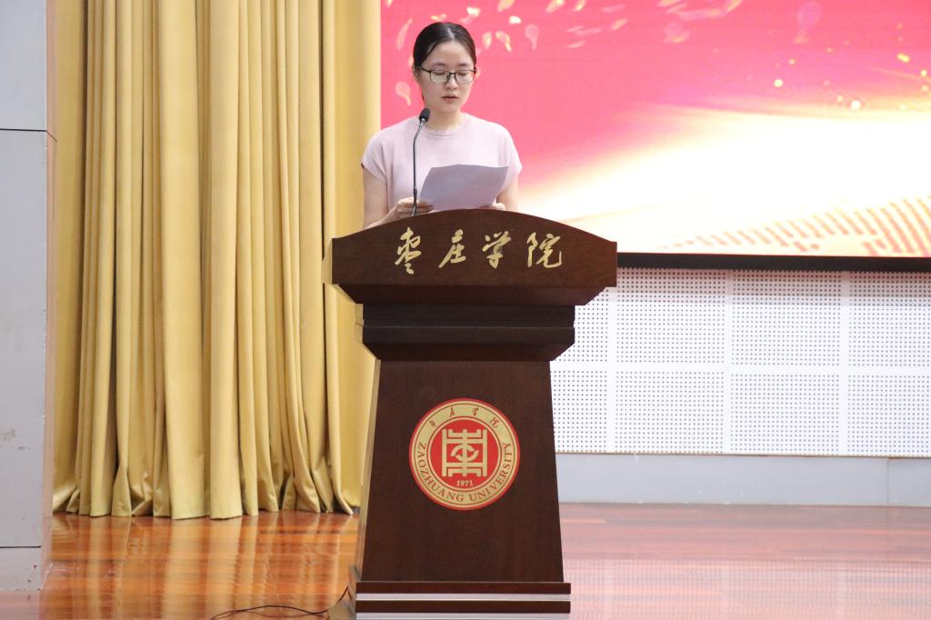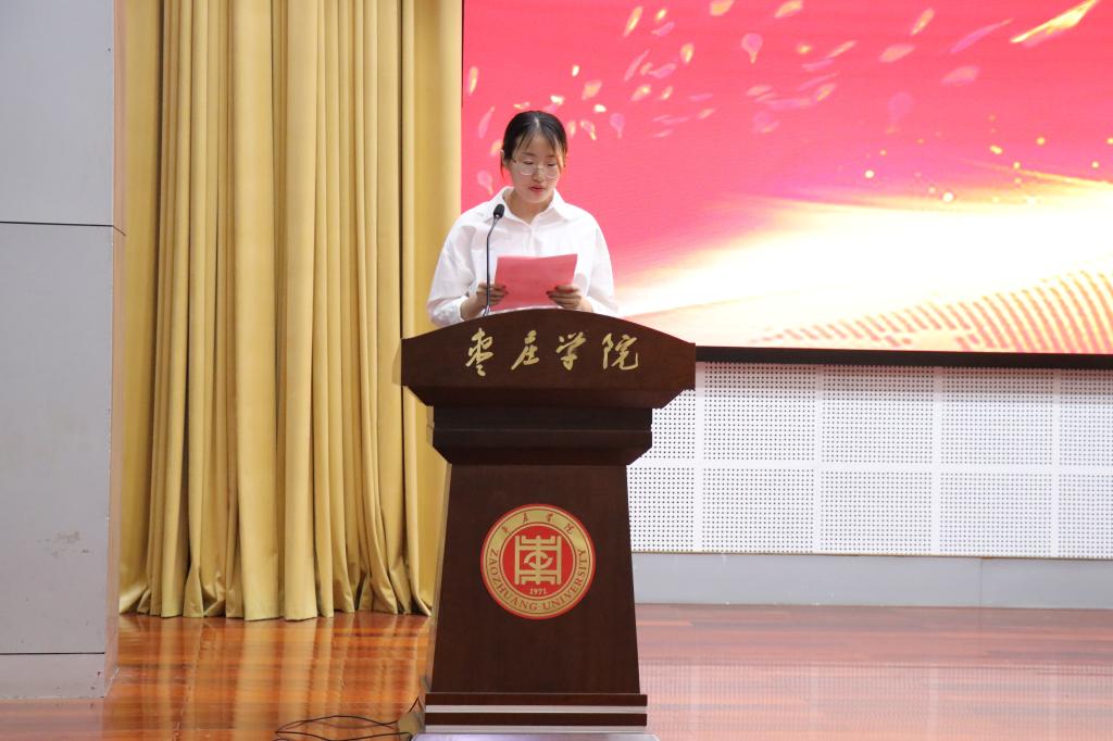 在校生代表赵媛同学代表学院全体在校生,向2017级学长们表示热烈地祝贺和诚挚的祝福,祝贺你们圆满完成学业,顺利毕业。感谢师哥师姐在学习生活上的引导和帮扶,并表示将以学长们为榜样,以榜样的力量发扬学院“传承创新,追求卓越”的精神,不断努力。