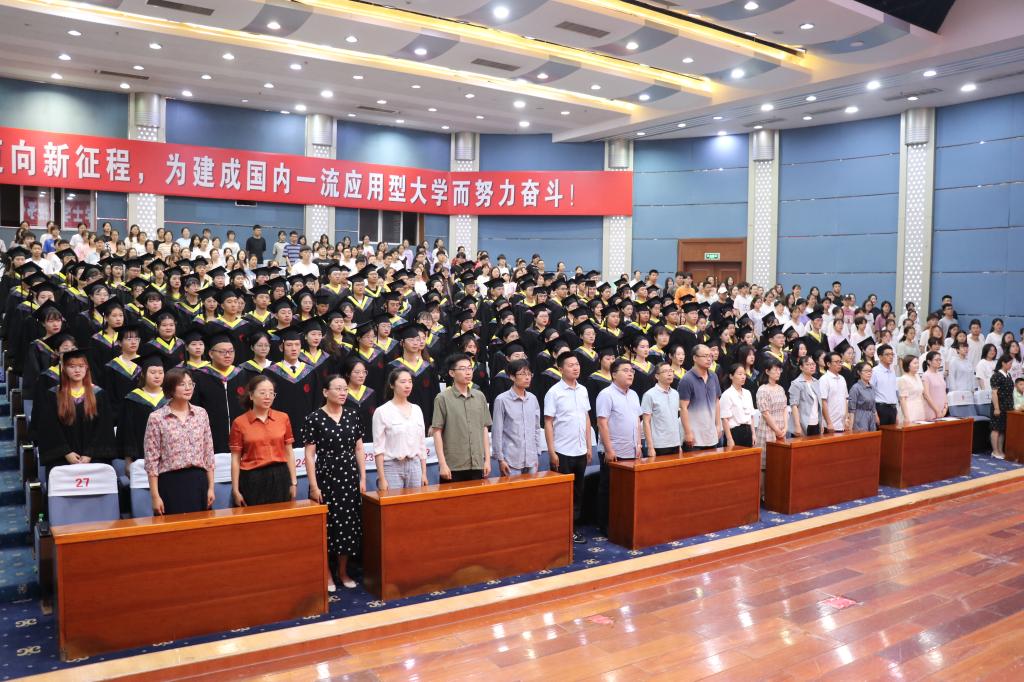 6月22日上午,yl23455永利2021届毕业典礼暨学士学位授予仪式在综合楼报告厅隆重举行。校长、党委副书记李文喜、校鲁班应用技术学院院长蒋秀英,学院党总支书记郭传鑫、院长张立华、副书记周玉亮、副院长王京龙,学院19位教师代表、毕业生家长杜鹃女士应邀参加会议。2019级、2020级学生代表270余人现场观礼。
