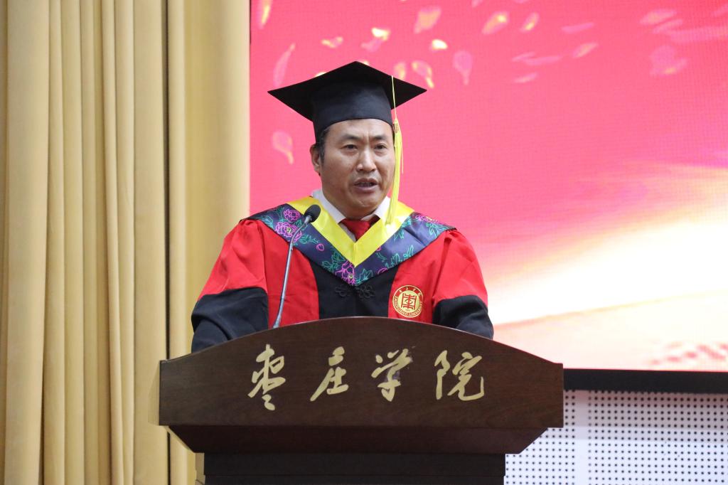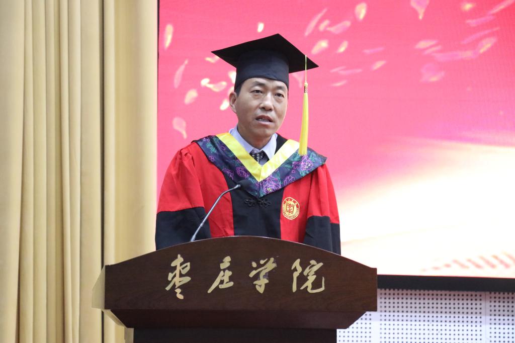 张立华代表学院进行致辞。张院长对同学们四年的勤奋给予了充分肯定,对同学们取得的成就、获得的进步充满了自豪,并向所有毕业生表示祝贺,送上毕业祝福。鼓励毕业生们不要“躺平”、不能“躺平”,要不安于现状,追求上进;不贪图享受,接续奋斗;不甘于平庸,追求卓越;不逃避困难,迎难而上!要奋斗在新时代、新征程,要志存高远,勇做时代的弄潮儿,要勇于担责、敢于尽责,努力创造无愧于自己无愧于时代的新业绩!