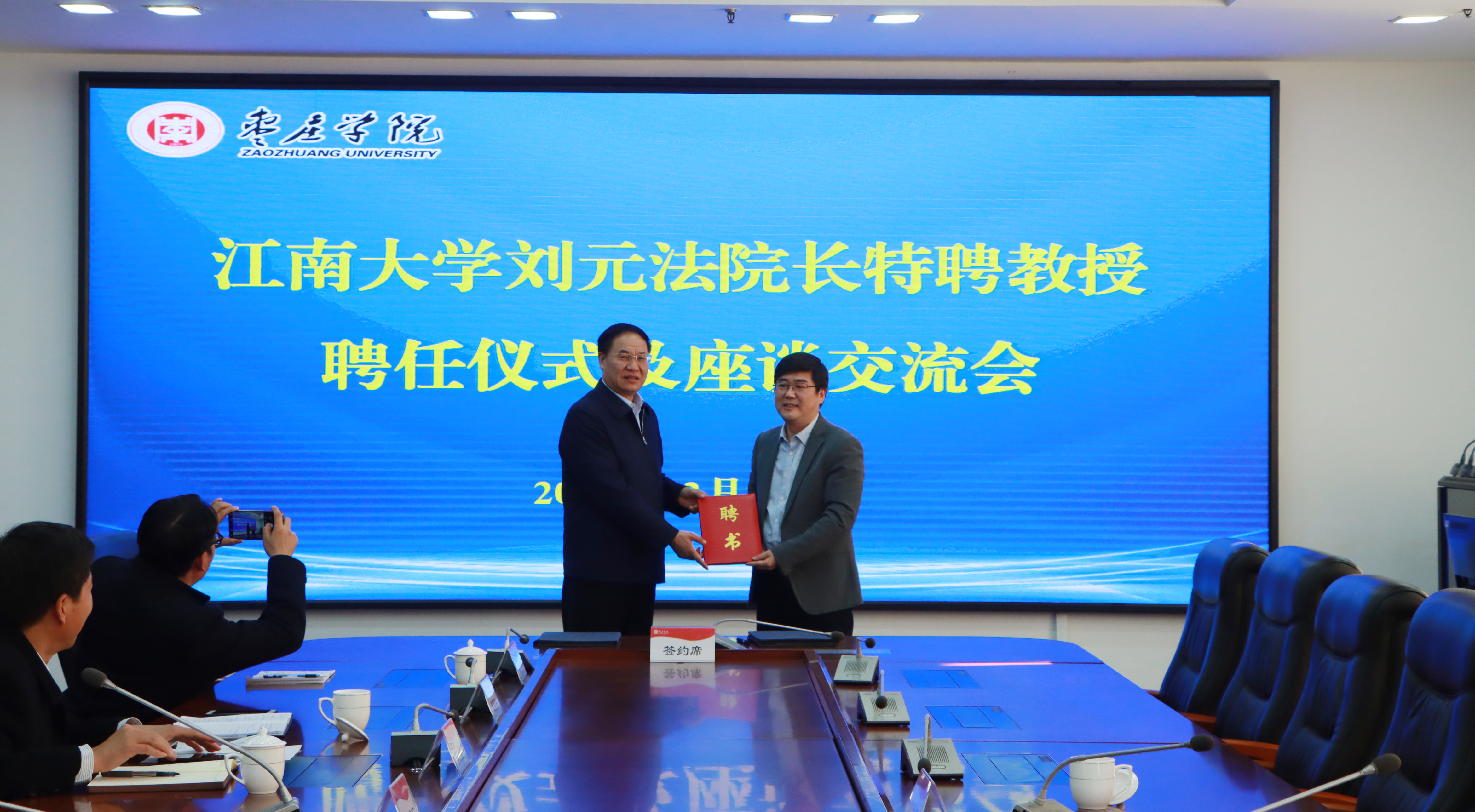 12月24日上午,我校在综合楼三楼会议室举行特聘教授聘任仪式,聘请江南大学食品学院院长刘元法教授担任我校特聘教授。校长李文喜,党委委员、副校长明清河出席,科技处、人事处负责同志,yl23455永利党政领导及教师代表参加活动。