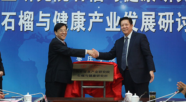 揭牌仪式后,随即举行了石榴与健康产业发展研讨会。会上,上海交通大学国家健康产业研究院院长、博士生导师鲍勇教授作了主题为“中国大健康产业发展战略与策略”的报告。分享交流了中国大健康产业发展的背景,中国大健康产业发展的政治条件,大健康产业的现状,国家健康产业研究院宗旨、发展规划、科学研究方向等。他指出,国家健康产业研究院以国家新医改和国务院健康服务业发展为纲领,以公共卫生三个主要领域:改善健康、维护健康以及改善健康服务的质量为宗旨,以偱证健康产业和管理方法为基础,进行健康产业和管理模式、机制、评价研究。他提出“健康枣庄”的概念,并希望在该理念下,成立大健康产业园。