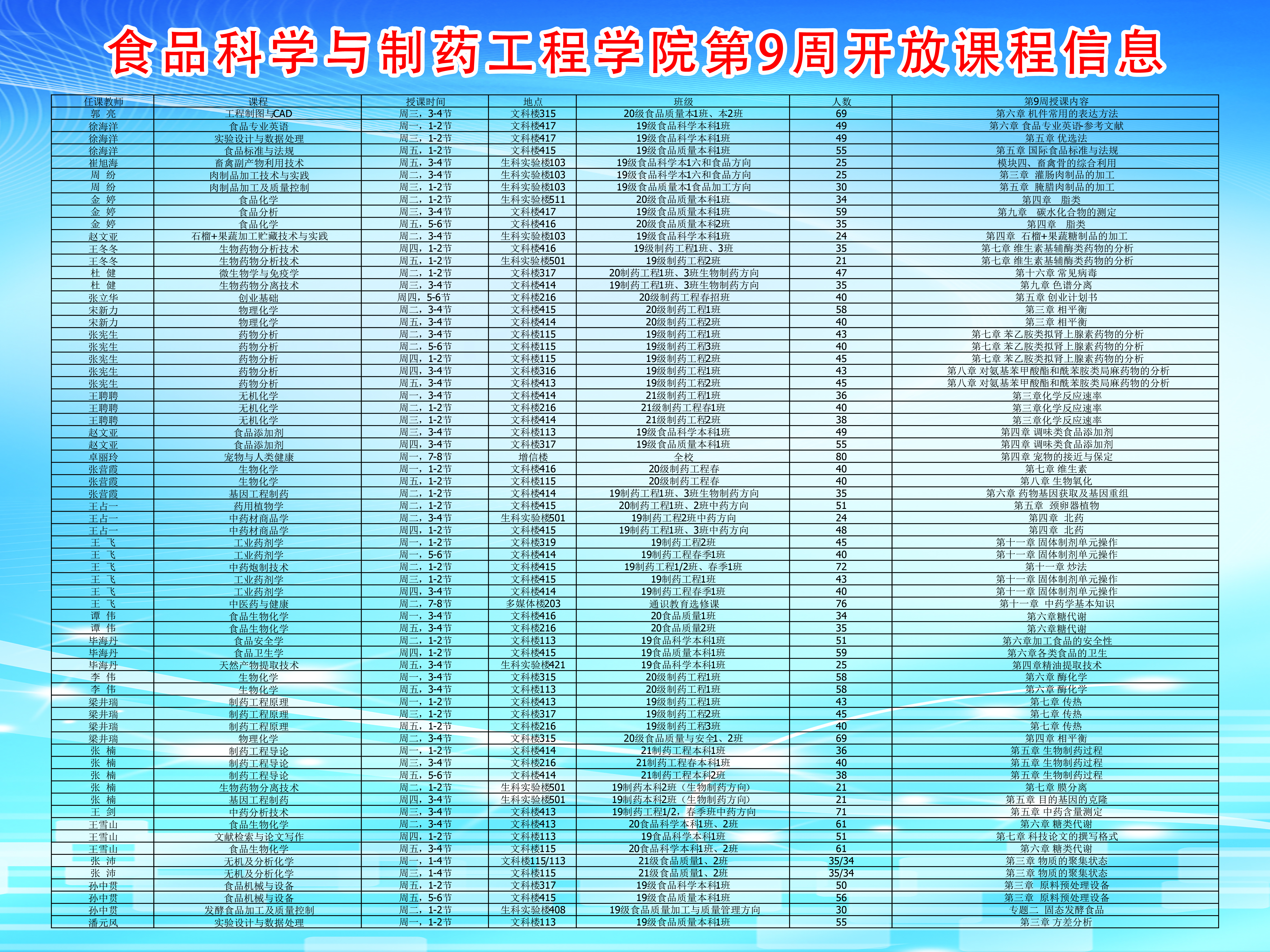 yl23455永利第9周开放课程信息