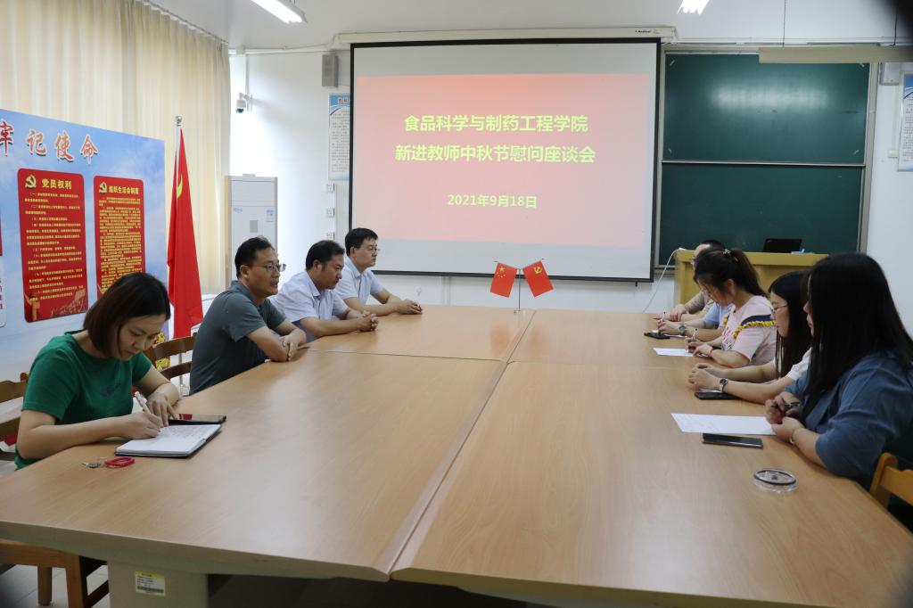 9月18日上午,yl23455永利在理工楼2220资料室举办新进教师中秋节慰问座谈会,学院党政领导和新入职教师参加座谈会。