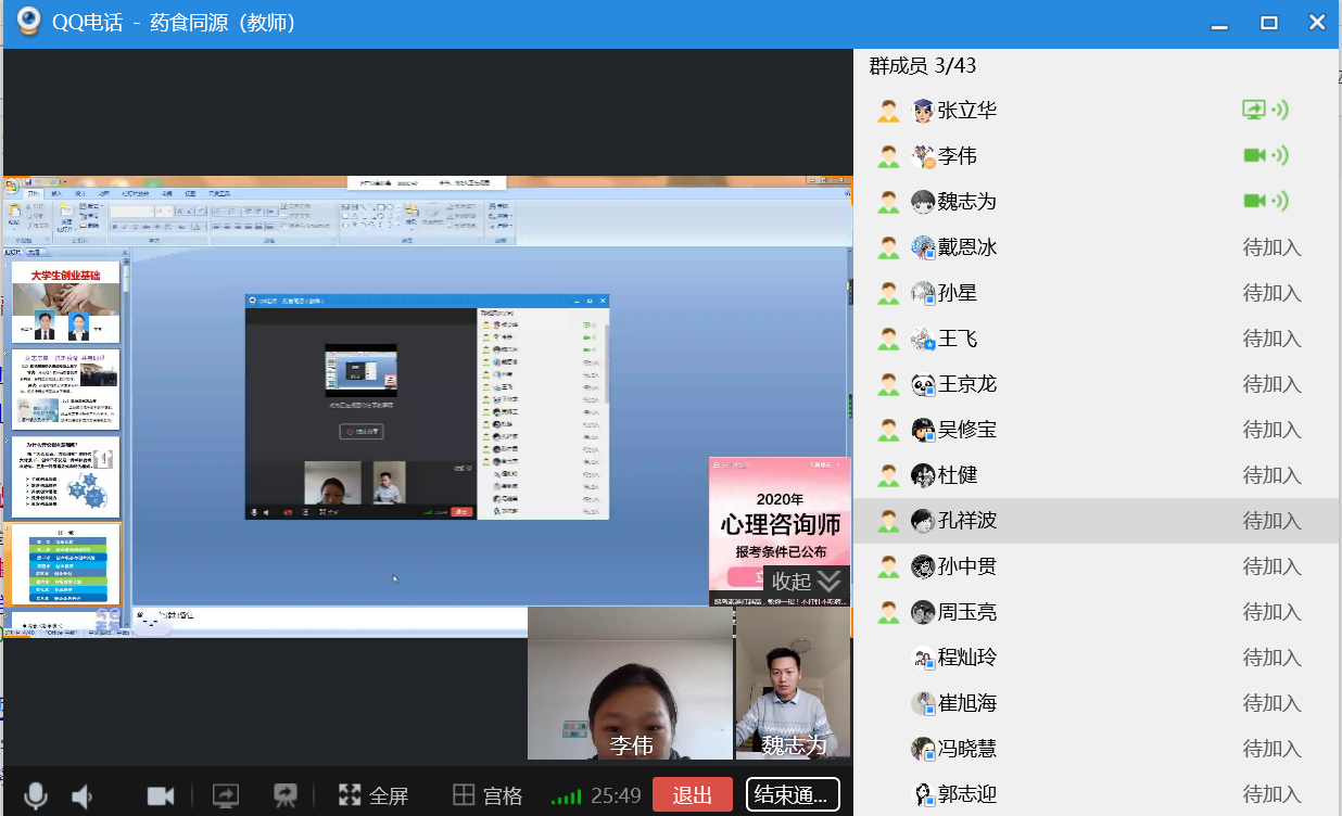 创业基础课团队的教师们在张立华教授的带领下,针对课程内容的选择、安排及教学计划多次开展了的线上集体备课交流,首先根据线上授课的特点对《创业基础》课程教学大纲的进行修订调整;其次,根据《创业基础》课程的特点研讨确定开展线上教学的方式和方法;另外,还不定期对教学中出现的问题开展备课研讨。